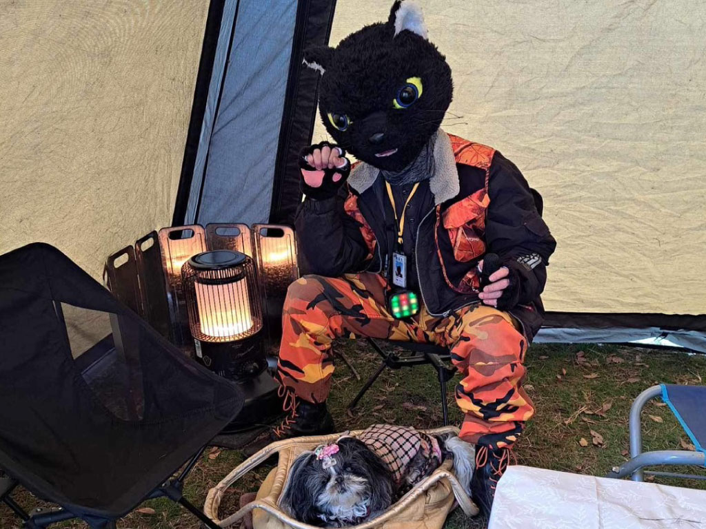 野きろの杜より災害時でのテント生活体験できる展示スペース&ペット防災ブースも出展しました。