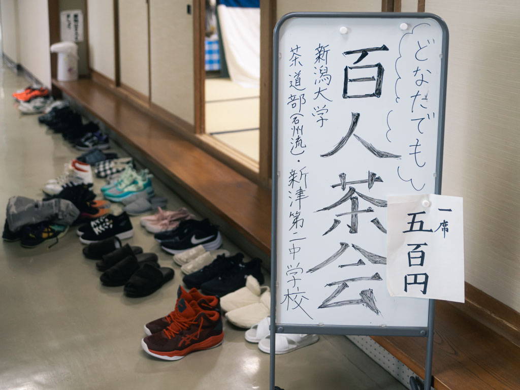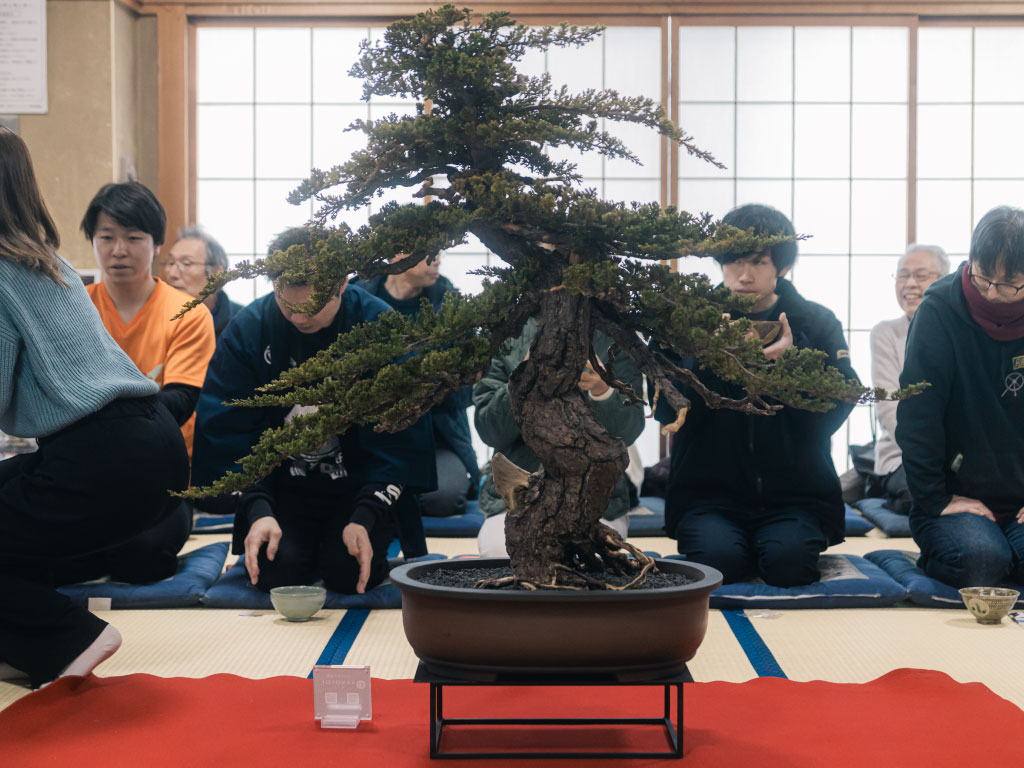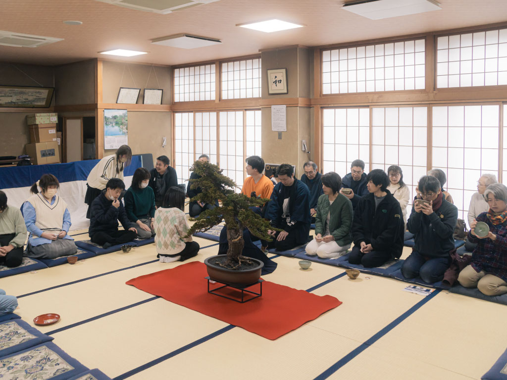 100人茶会ではアート盆栽を鑑賞しながら新潟からなる100個の茶碗を用いて皆さまと茶会を開催