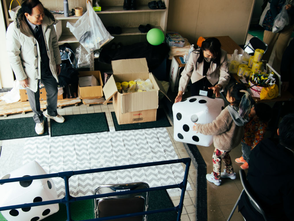 防災ハザードマップ作成、景品ありサイコロゲームを実施しました。