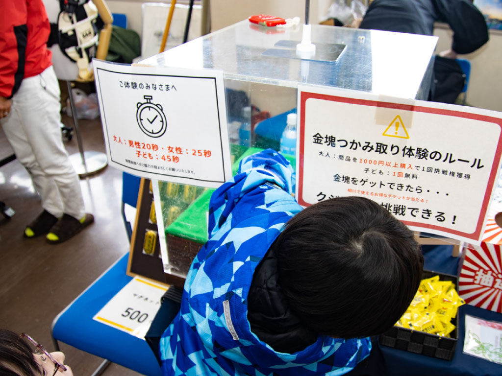 佐渡の特産品販売・佐渡おけさの演奏・金塊つかみ体験・観光案内・写真展示