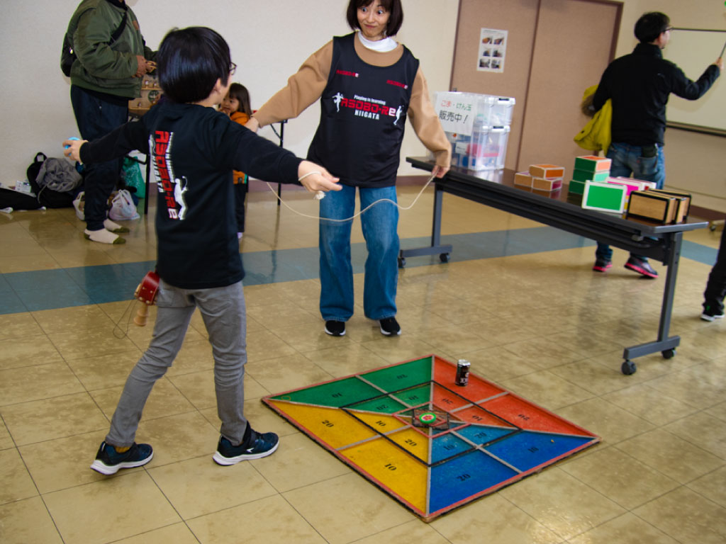 プレイルームとして、こま・けん玉・竹馬・ジャグリングなど