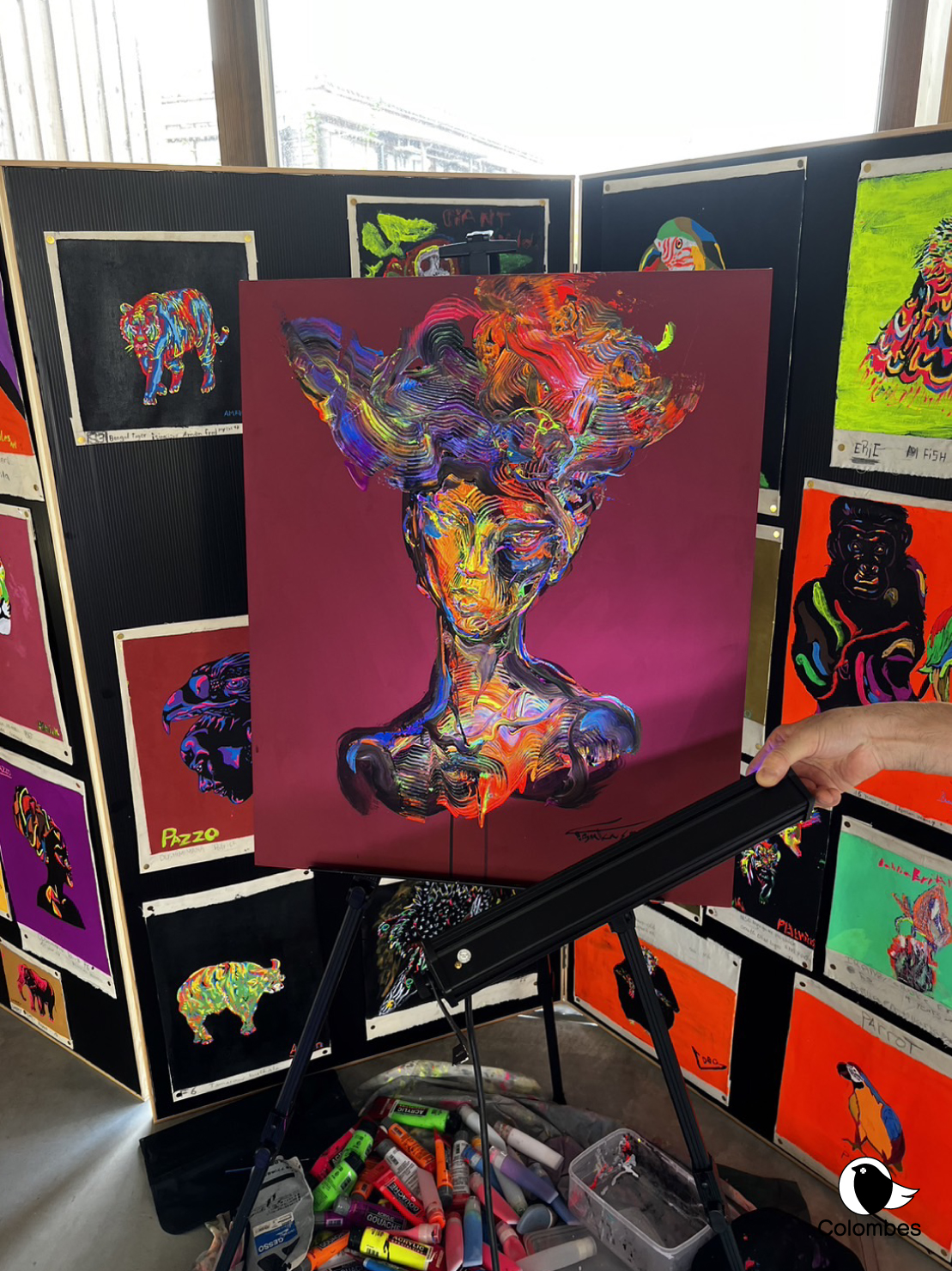 2016年帰国後、絵画制作を本格的に開始。アフリカの動物や人々また東アジアの龍・鳳凰などをテーマとし、蛍光色を含む色彩豊かなポップアート的な作品を生み出している。ライブペインティングや壁画・天井画など大規模作品の制作多数。またルワンダ時代に絵具がなくて始めた「珈琲画」の分野でも多数のワークショップを行っている。