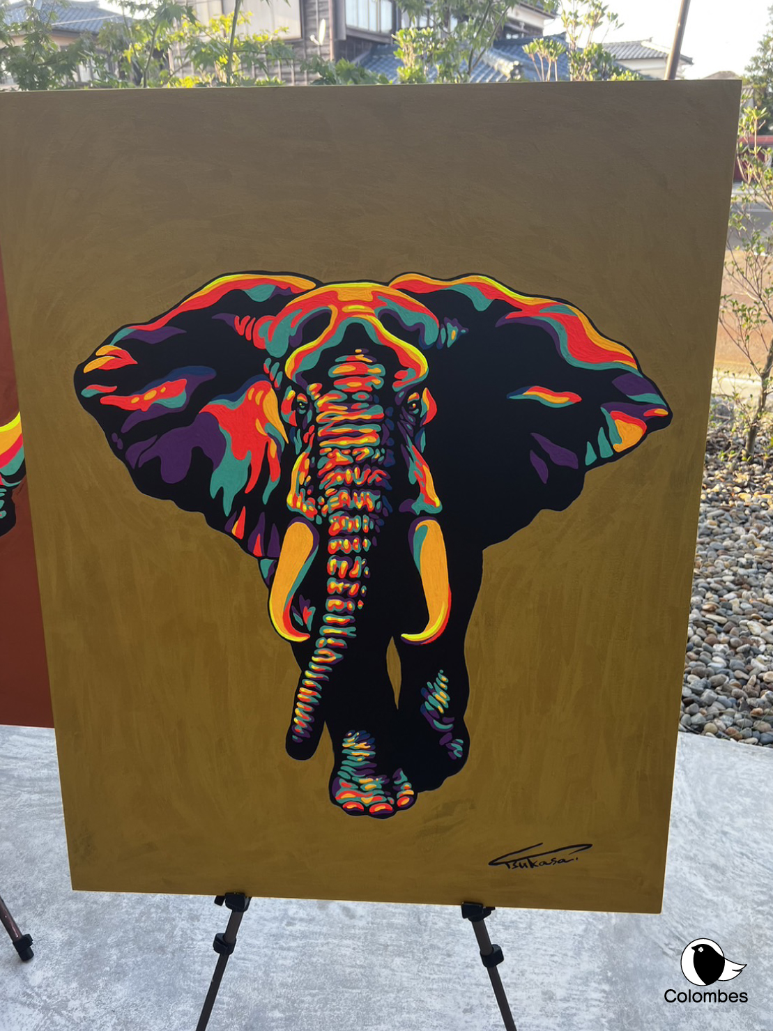 Since returning to Japan in 2016, he has focused on painting. His colorful/flat style with unique use of fluorescent paint and black light is influenced by both Japanese and African cultures. He is known for his live painting, and has collaborated with many exceptional musicians from Africa, the United States, and Japan. Currently he teaches "coffee painting" that he started when he didn't have paint in Rwanda.